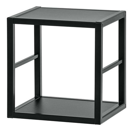 Nadčasový kovový regál řady Switch RM 5 v černé matné barvě. Regál je vhodné umístit do obývacího pokoje, pracovny či spíže.
