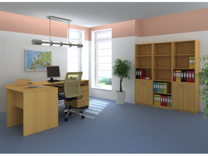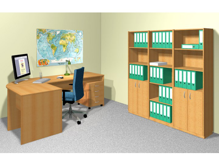 Rozmanitá sektorová sestava vhodná na zařízení kanceláří, pracoven, školních učeben, nebo zasedacích místností. Materiál: DTD laminovaná, ABS hrany. Možnost vybrat si z barevných provedení buk, dub Sonoma, Bardolino tmavé a třešeň.
