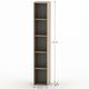 Úzký policový regál má využití pro menší kanceláře s nedostatkem prostoru. Regál disponuje pěti odkládacími prostory, které od sebe oddělují čtyři police. Barevné provedení dub Sonoma.