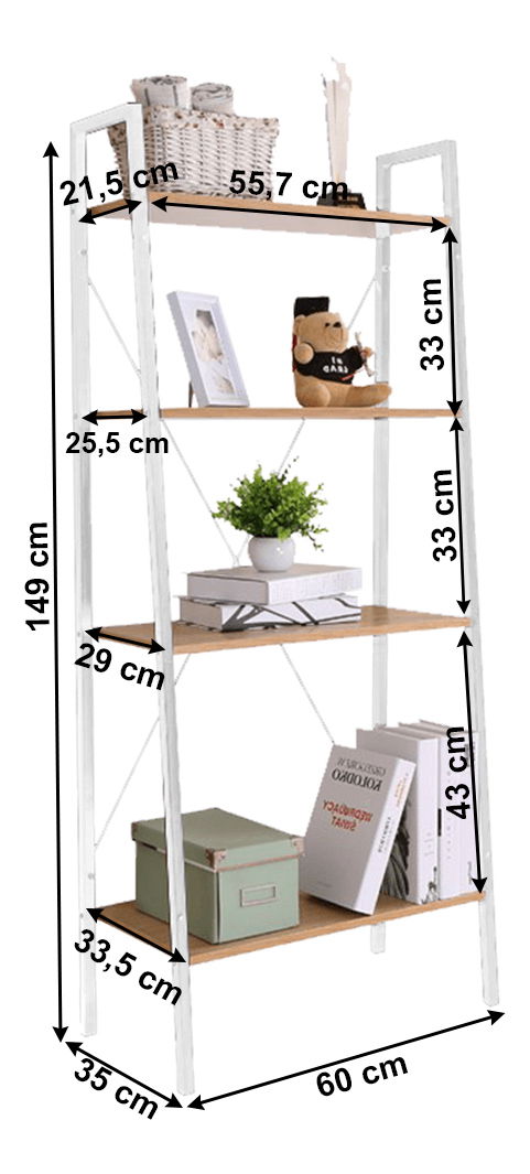 Jste fanouškem funkčního nábytku, který navíc vypadá stylově a perfektně zapadá do celkového designu interiéru? Vyberte si regál Theo. Můžete ho využít jako knihovnu, na vystavení suvenýrů, uložit květiny či fotografie, vše najde uplatnění. Konstrukci tvoří kov v bílém provedení a police jsou z DTD laminované v provedení dub, což vytváří zajímavou moderní kombinaci s industriálním efektem. Regál tvoří čtyři police, na nohách se nacházejí rektifikační šrouby, které slouží k vyrovnání nerovného podkladu, čímž zajišťují stabilitu regálu.