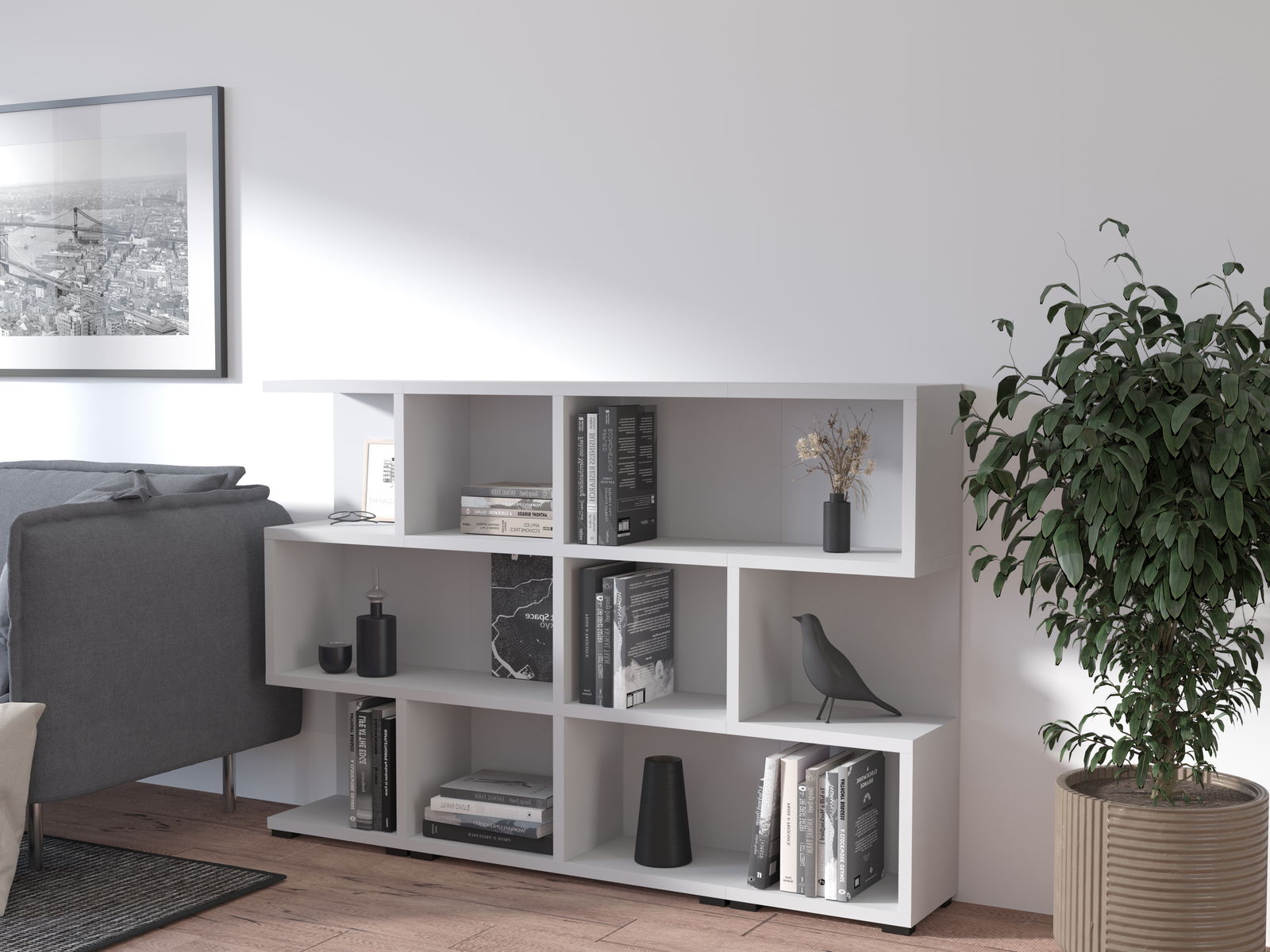 ZobrazitVyužite možnosť zoskladania modernej nižšej knihovne vďaka niekoľkým regálom vedľa seba.