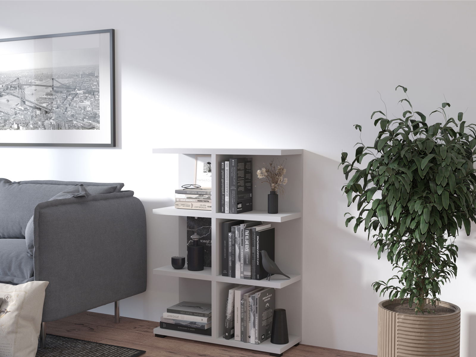 Využite možnosť zoskladania modernej nižšej knihovne vďaka niekoľkým regálom vedľa seba.