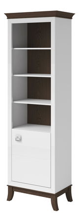 Tento regál je praktickým řešením pro ty, kdo hledají stylový úložný prostor do svého interiéru. Vyrobeno z kvalitní laminované dřevotřísky ABS hranami, zaručuje odolnost a dlouhou životnost. Regál na nožičkách z masivu, který mu dodává stabilitu a přírodní vzhled. Má jedny dvířka s kovovými úchytkami a je vybaven systémem tichého zavírání, který zajišťuje hladké a bezhlučné otevírání. Uvnitř regálu naleznete pět polí, která nabízejí prostor pro uložení knih, dekorací či jiných předmětů, čím více můžete udržet váš prostor uspořádaný a uspořádaný.