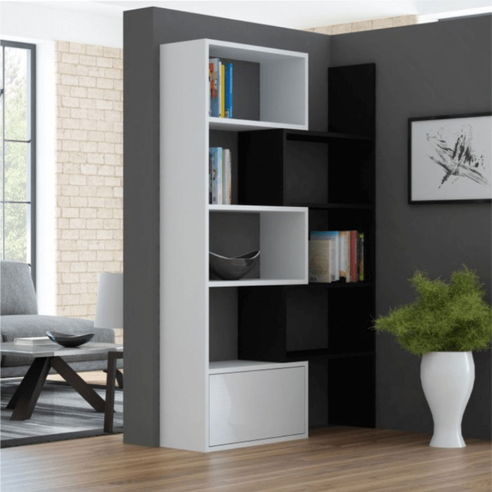 Regál Unwest (bílá + černá) je praktický a moderní nábytek pro vaše domácnosti Barevné provedení v bílo-černém designu dodává vašim prostorám nový šmrnc. 74-130x29x187,5 cm a tloušťkou materiálu korpusu 22/16 mm, tento regál nabízí dostatek úložného prostoru na vaše věci. Regál je dodáván v demontu, což zajišťuje jednoduchou montáž.