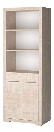 Regál z kolekce Vega. Má dvě velké prostorné police, které jsou otevřené, díky čemuž jsou ideální pro vystavení knih, dekorací nebo suvenýrů. Nábytek má také dvoje dvířka s jednou policí uvnitř, ideální pro ukrytí věcí před denním světlem. Knihovna zapadne do každého aranžmá, vnese do pokoje hřejivou a příjemnou náladu. Kovové úchyty zdůrazňují pevnost a eleganci nábytku.