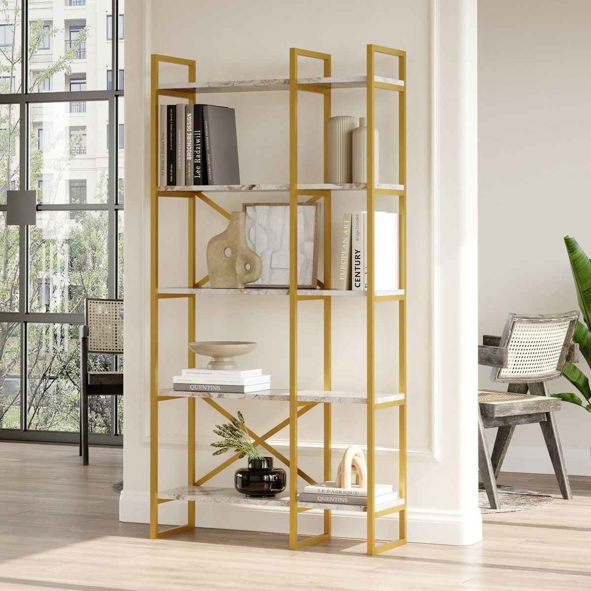 Regál Vega 4 (Bílý mramor + Zlatá)