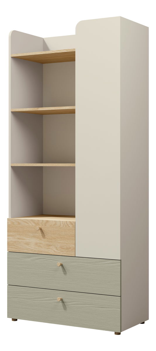 Regál Yoda 3 (světlobéžová + dub olejovaný + eukalyptus)