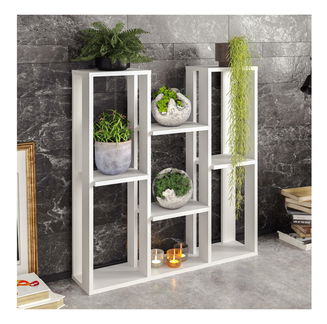Pokud máte oblibu v pěstování květin, tak do designového otevřeného regálu se vejde více květináčů, které tak vytvoří zelenou oázu ve vašem obývacím pokoji nebo pracovně.