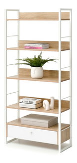Není pravidlem, že regál je jen skříň s otevřenými policemi. Může to být i kombinace polic s dvířky a šuplíky nebo prosklený regál, který znáte pod názvem vitrína. Regály se vyrábějí i v různých barevných variacích. Pro milovníky dřevěné struktury jsou vyráběny ve vzoru klasického dubu a buku, v populárním dubu sonoma nebo elegantní třešni. Jednoduchost a vzdušnost zase získáte jednobarevnými bílými regály, ale také v odstínech černé a šedé. Nabídka regálů je tak široká, že v ní naleznete regály různé výšky a šířky. Do menších prostor nebo pro vyplnění a dekoraci prostoru vybírejte úzký regál nebo nízký regál, na který můžete položit vázu s květinami nebo fotorámeček. Do větší hlavní místnosti vybírejte zase vysoký regál nebo rohový regál.
