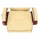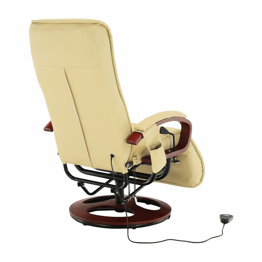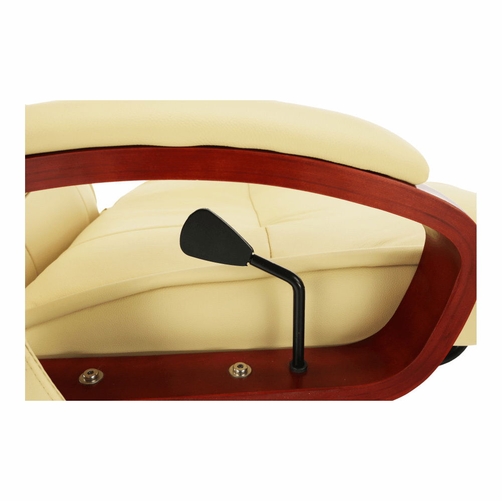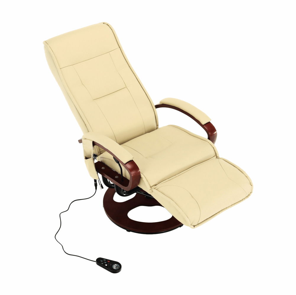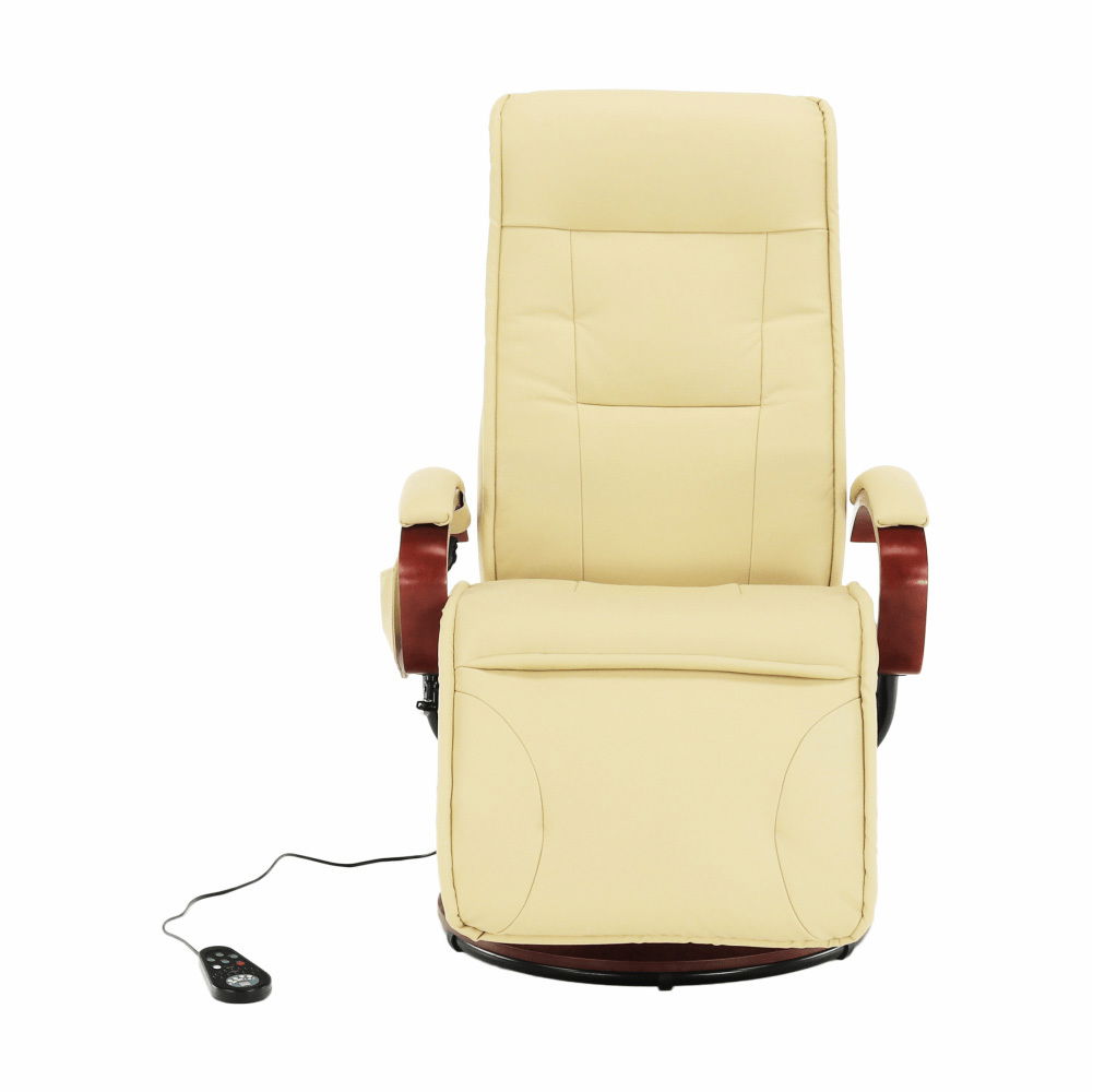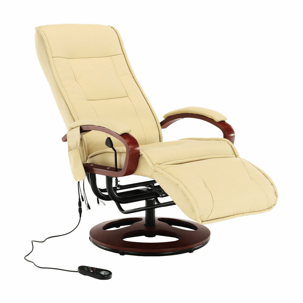 Křeslo Arturo je otočné a mechanicky polohovací. Pomocí páky si jednoduše nastavíte až tři polohy opěrky zad a podnože. Křeslo je vybaveno elektrickou funkcí masáže a vyhřívání v bederní části opěradla. Dejte se hýčkat masáží až v osmi masážních bodech. Zajímavý a efektivní tvar křesla zajišťuje dostatečnou oporu těla a podnož zase dopřeje pohodlí vašim nohám. Materiály použité při výrobě – ekokůže a pravá hovězí kůže – jsou pevné a odolné a ve vzájemné kombinaci působí velmi stylově. Křeslo nabízíme v barevném provedení elegantní béžové, dřevo má odstín třešně.