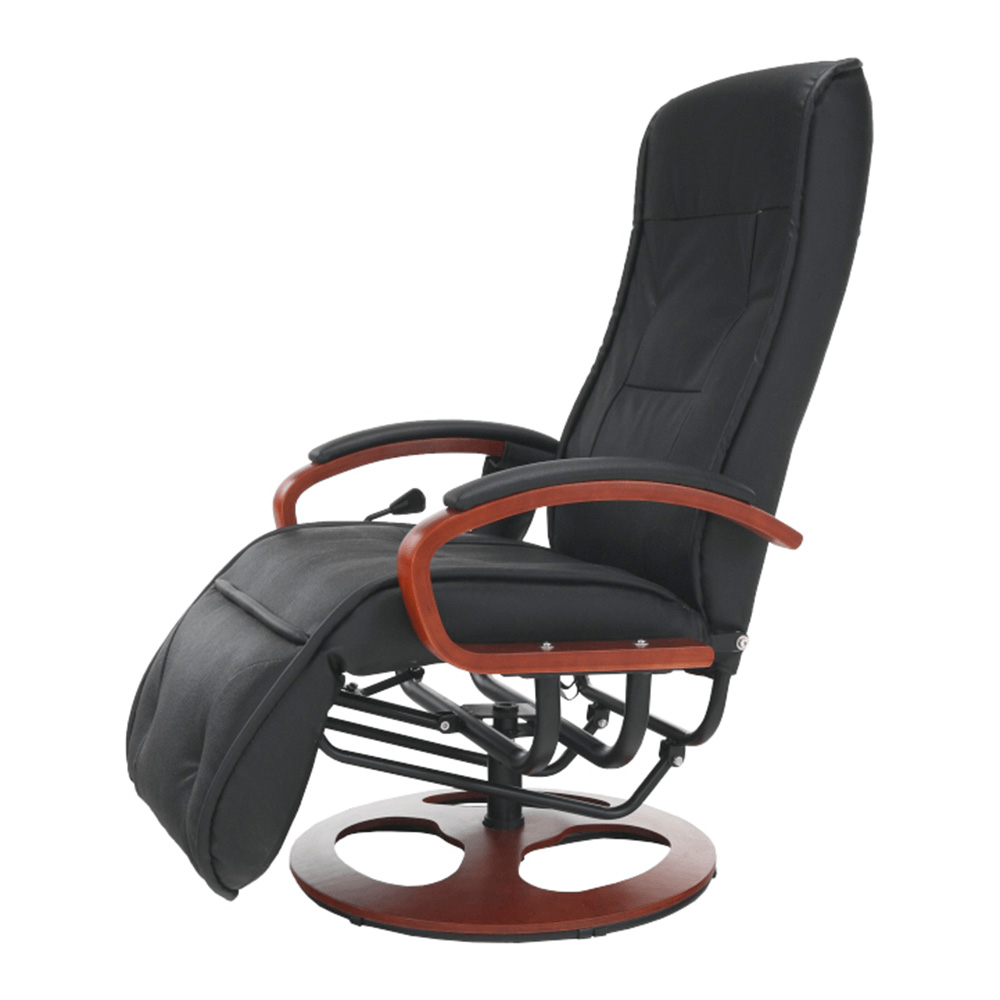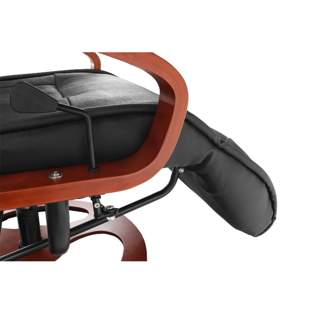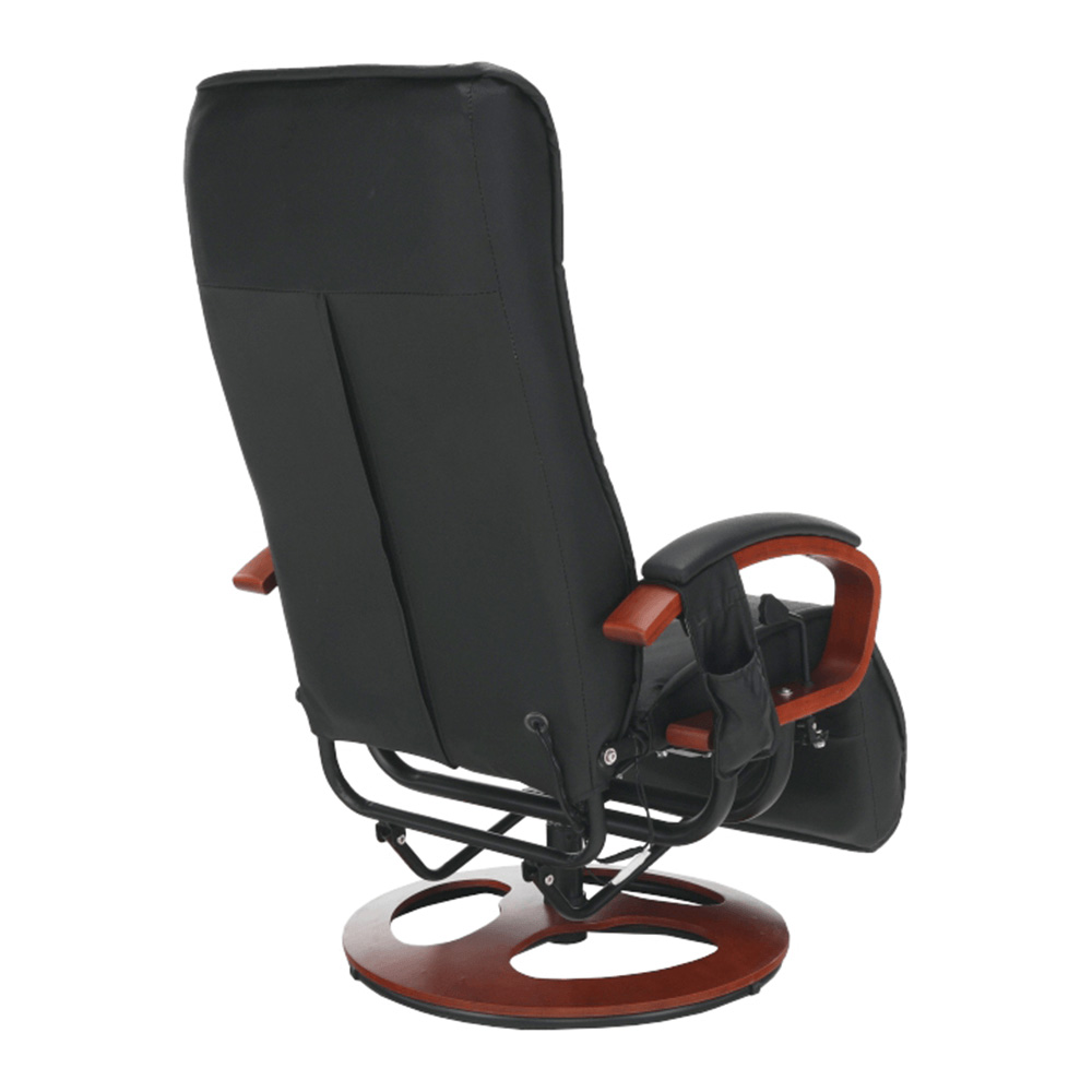 Křeslo Arturo je otočné a mechanicky polohovací. Pomocí páky si jednoduše nastavíte až tři polohy opěrky zad a podnože. Křeslo je vybaveno elektrickou funkcí masáže a vyhřívání v bederní části opěradla. Dejte se hýčkat masáží až v osmi masážních bodech. Teplo, příjemné teplo, horko! Křeslo poskytuje vyhřívání až v pěti stupních intenzity. Zajímavý a efektivní tvar křesla zajišťuje dostatečnou oporu těla a podnož zase dopřeje pohodlí vašim nohám. Materiály použité při výrobě – ekokůže a split kůže – jsou pevné a odolné a ve vzájemné kombinaci působí velmi stylově. Křeslo nabízíme v barevném provedení elegantní černé, dřevo má odstín třešně.