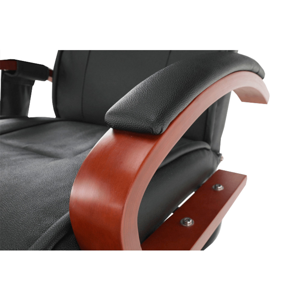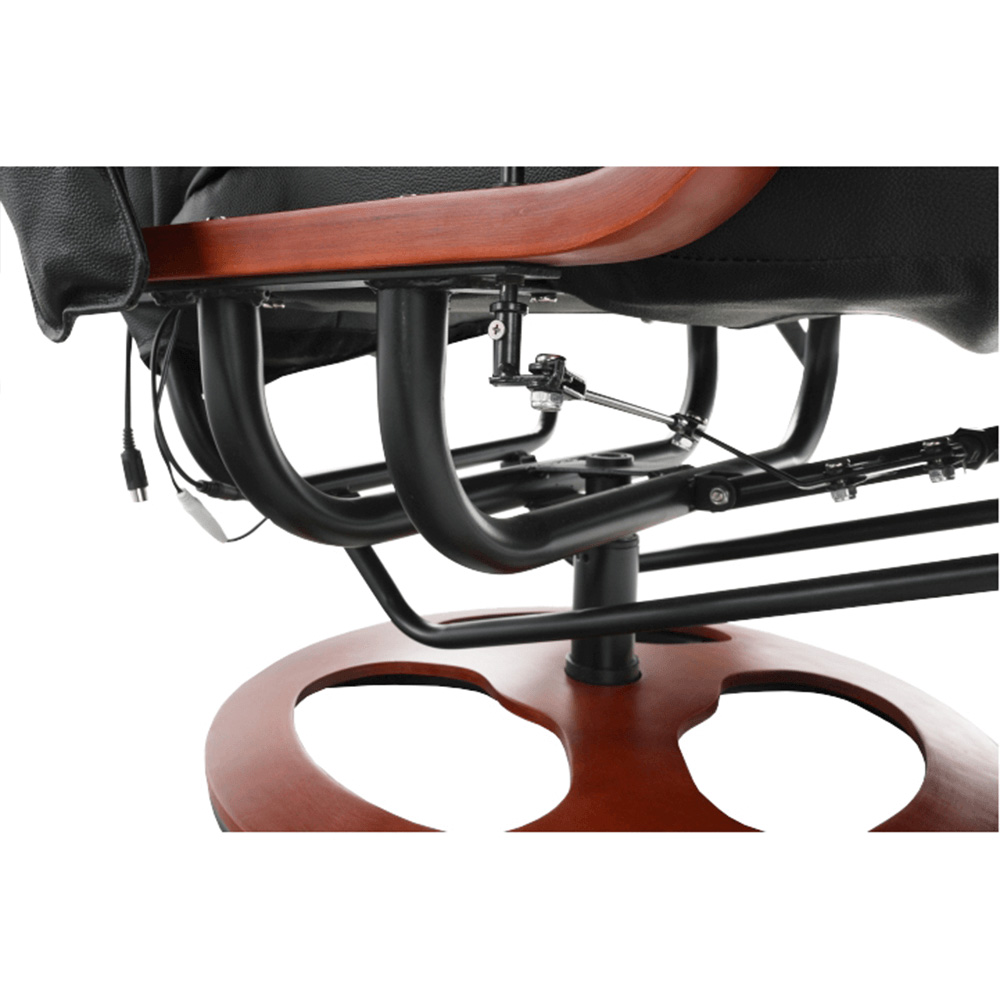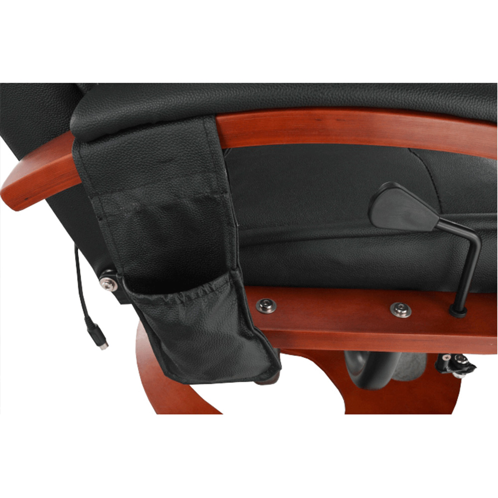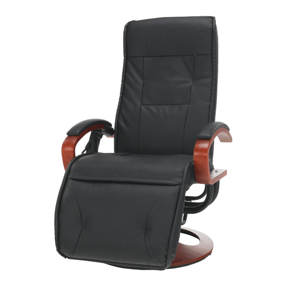 Křeslo Arturo je otočné a mechanicky polohovací. Pomocí páky si jednoduše nastavíte až tři polohy opěrky zad a podnože. Křeslo je vybaveno elektrickou funkcí masáže a vyhřívání v bederní části opěradla. Dejte se hýčkat masáží až v osmi masážních bodech. Teplo, příjemné teplo, horko! Křeslo poskytuje vyhřívání až v pěti stupních intenzity. Zajímavý a efektivní tvar křesla zajišťuje dostatečnou oporu těla a podnož zase dopřeje pohodlí vašim nohám. Materiály použité při výrobě – ekokůže a split kůže – jsou pevné a odolné a ve vzájemné kombinaci působí velmi stylově. Křeslo nabízíme v barevném provedení elegantní černé, dřevo má odstín třešně.