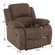 Relaxační křeslo Astolat o výšce 97 cm a hloubce 92 cm v hnědém provedení je ideální pro ty, kteří trpí bolavými zády a unavenýma nohama. Křeslo je vyrobeno z kvalitní látky a má mechanický polohovací systém, který poskytuje maximální komfort. Jednoduchý mechanismus umožňuje přeměňovat křeslo na pohodlné lehátko, kde si můžete odpočinout kdykoli. Podnož můžete vysunout pomocí páčky na boční straně křesla a opěradlo sklopit dozadu jemným potlačením. Křeslo je vhodné do obývacího pokoje, pracovny i do ložnice. Výška sedu je 49 cm a hloubka 56 cm. Křeslo je vyrobeno z látky a masivního dřeva s překližkou a má nosnost až 110 kg. Barva křesla je hnědá a jeho rozměry jsou 87x92x97 cm. Křeslo se dodává v demontu.