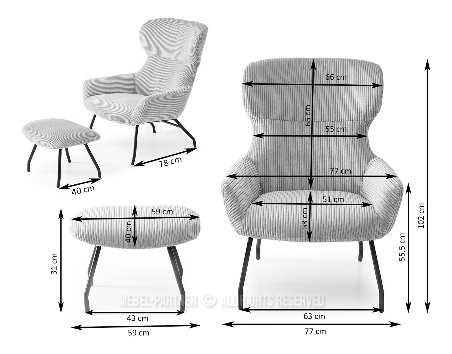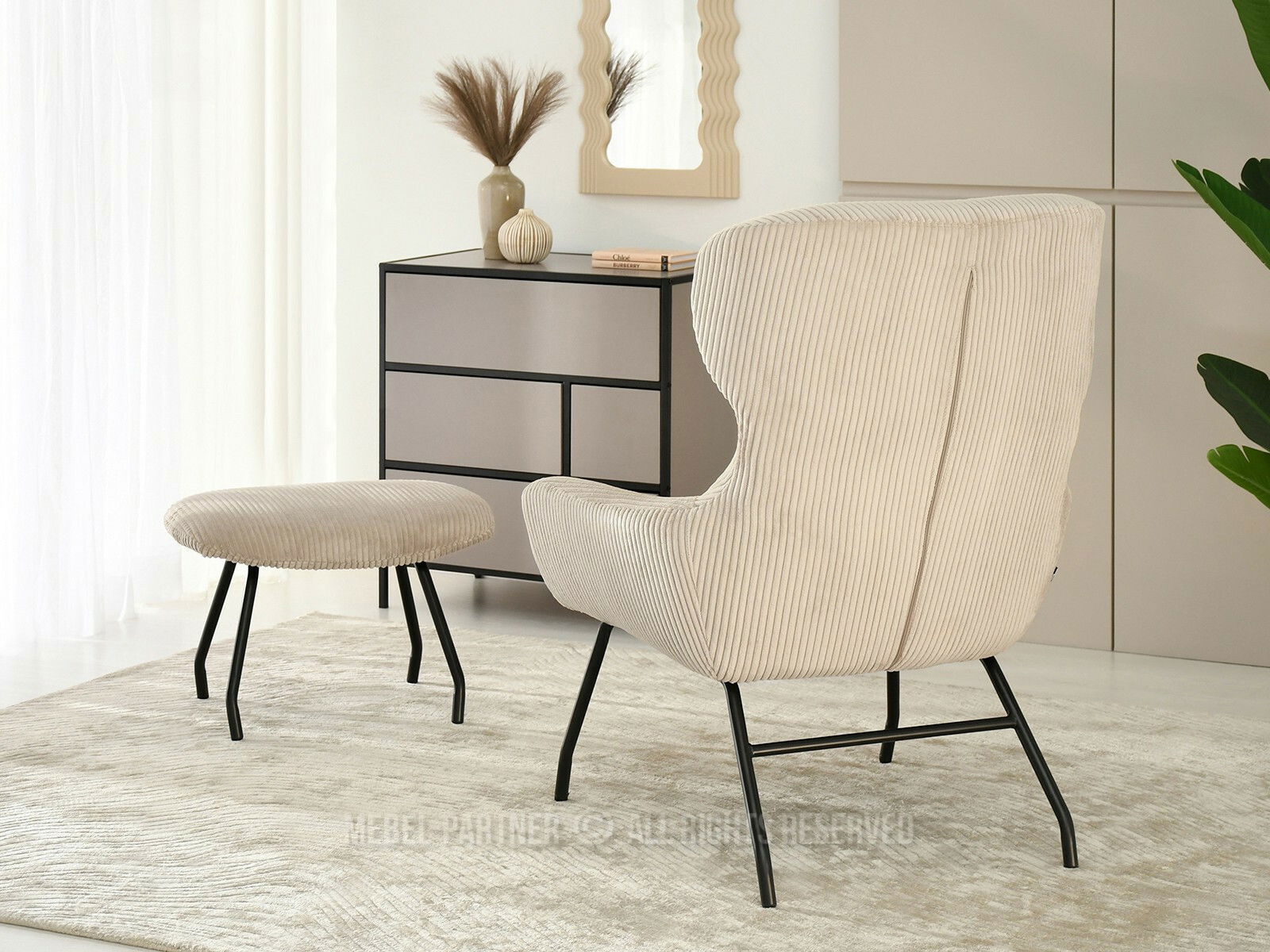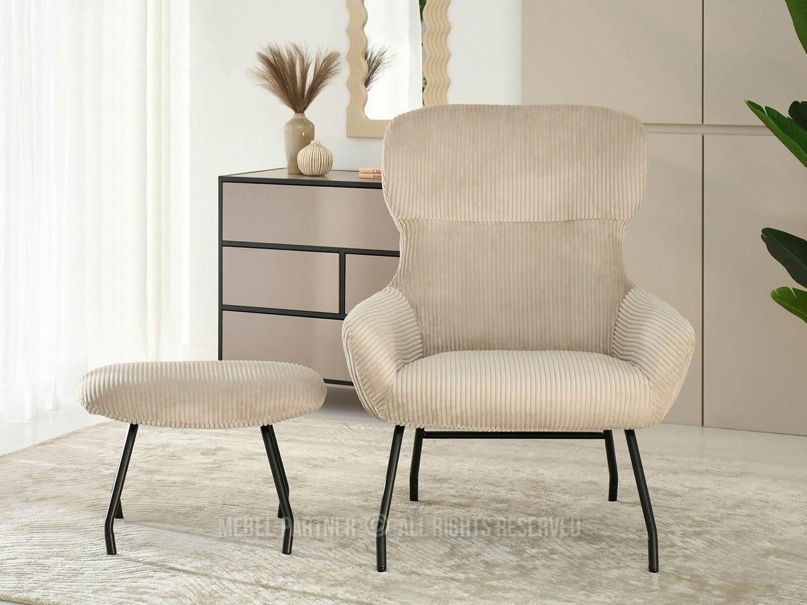 Relaxační křeslo Condorin (písková + černá) (s podnožkou)