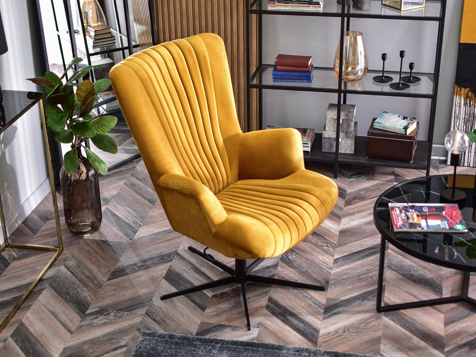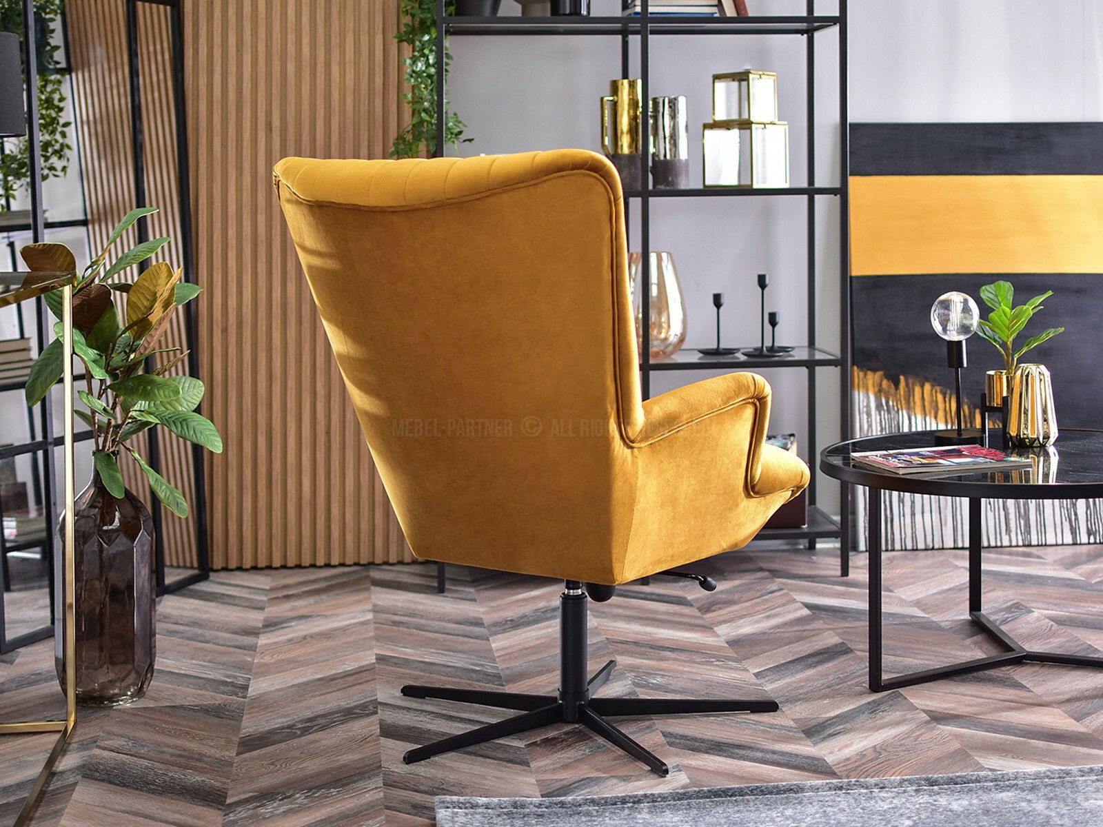 Relaxační křeslo Elesenta (medová + černá)