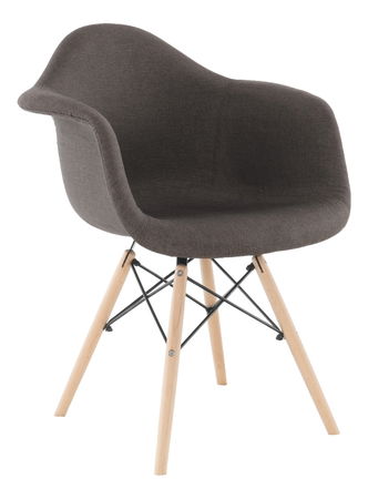 Moderní tvary a jednoduchost konstrukce zaručí tomuto křeslu že se hodí do jakékoliv místnosti. Sedací část je čalouněná látkou což zaručí pohodlné sezení. Konstrukce je bukové dřevo a kov.