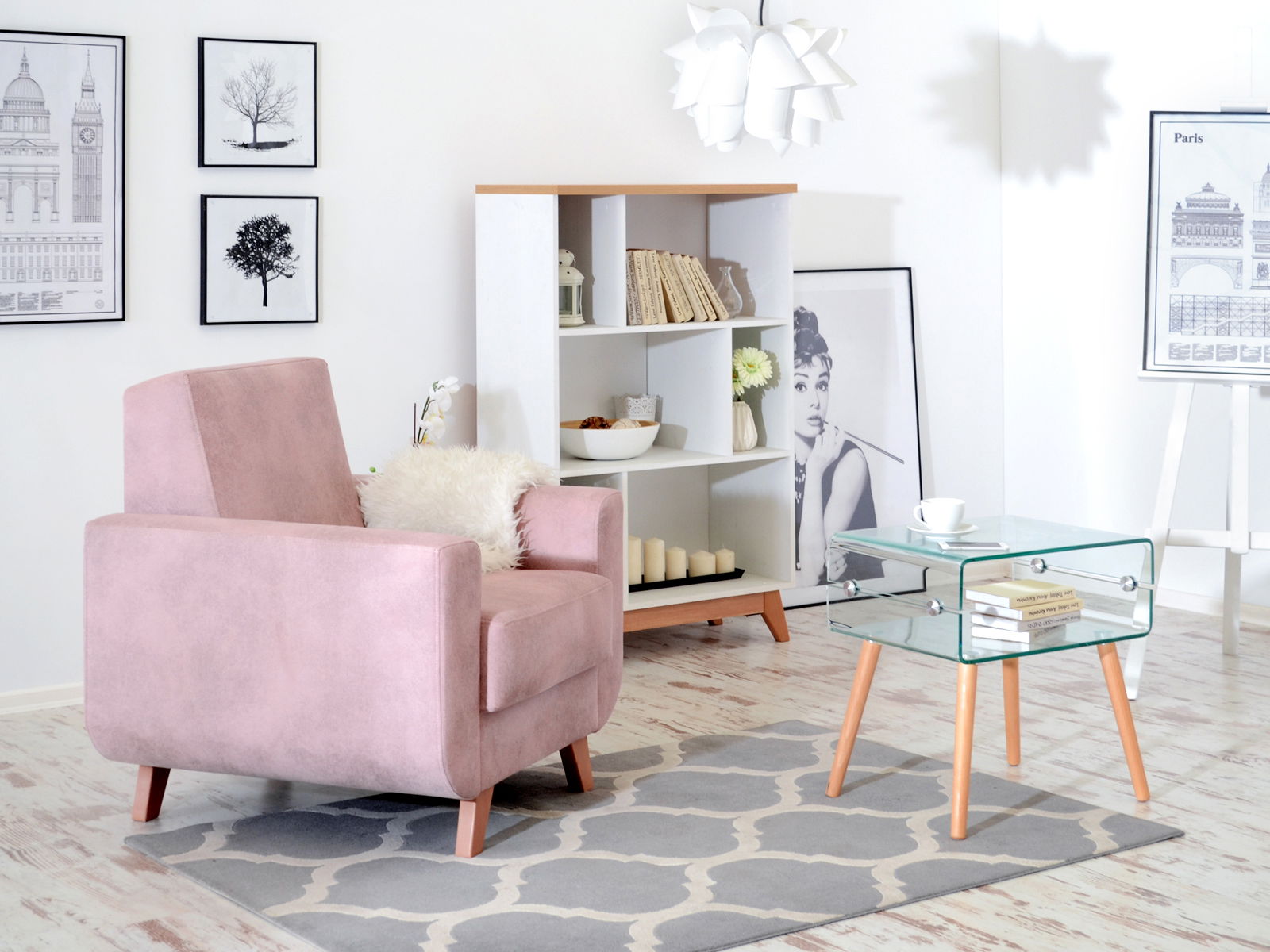 Relaxační křeslo Kadim (růžová + buk)