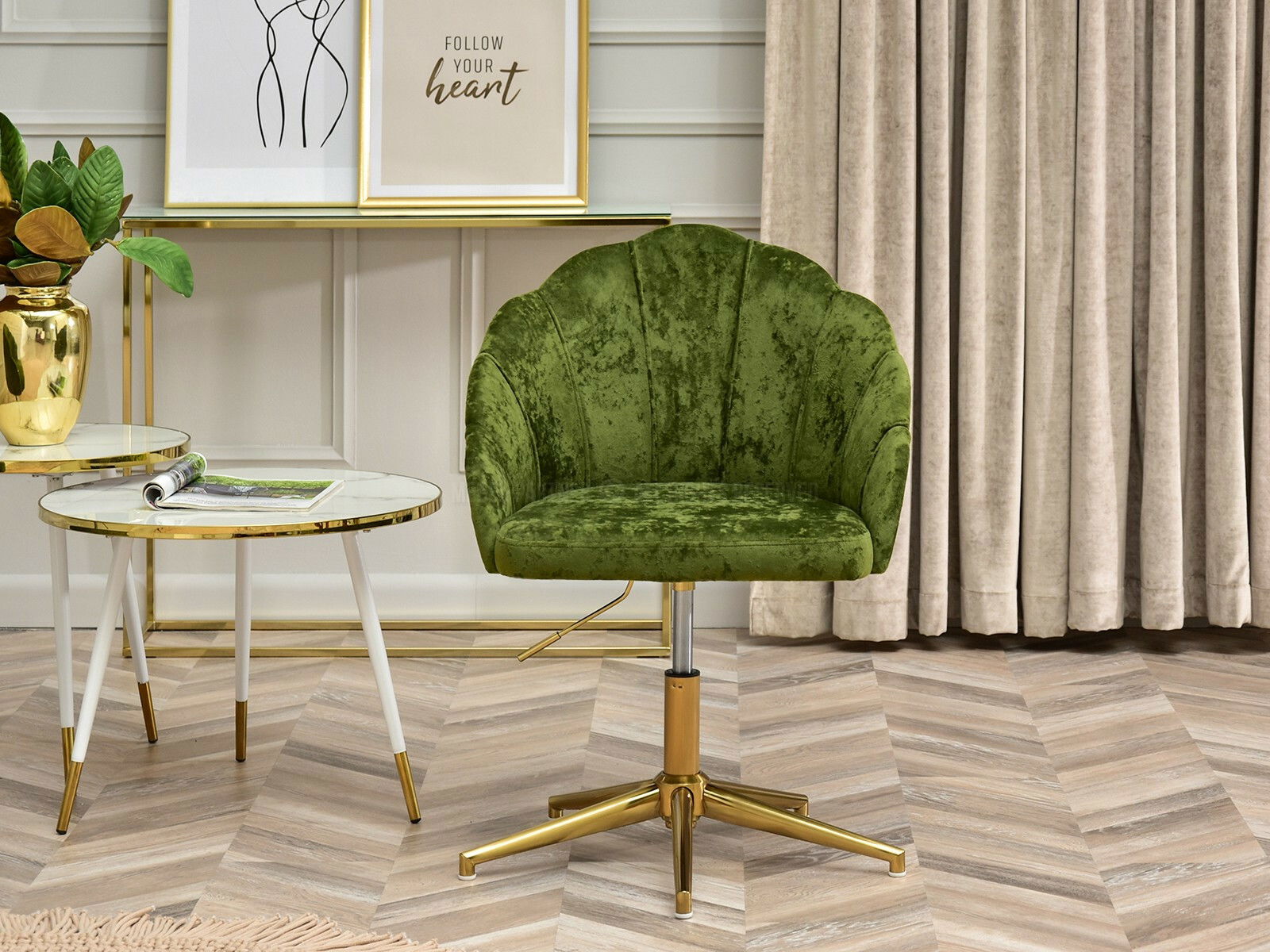 Relaxační křeslo Leezare (zelená + zlatá)