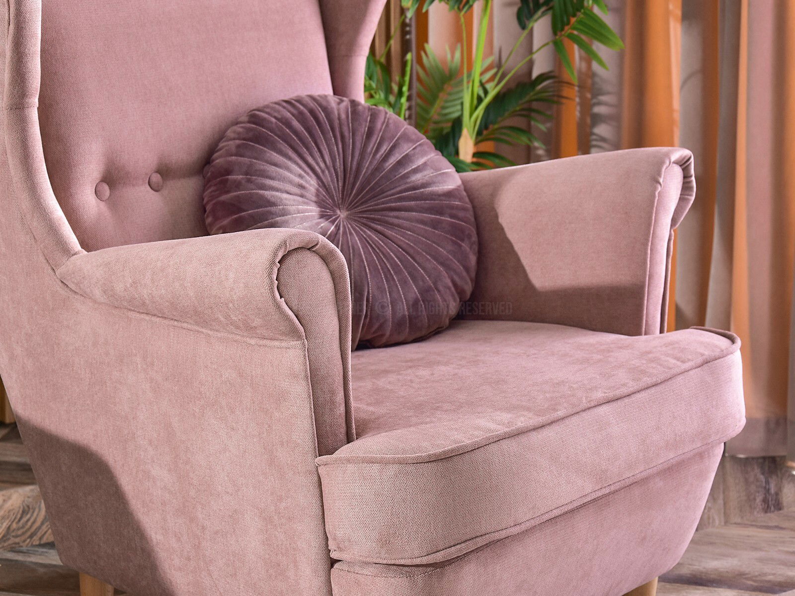 Relaxační křeslo Margis (pudrová růžová + buk)