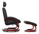 Pohodlné relaxační křeslo Nigel si oblíbíte při oddechování, čtení dobré knihy nebo sledování TV. Opěradlo je polohovatelné pro zvýšení pohodlí při sezení. Praktická podnožka dopřeje relax Vašim unaveným nohám. Je čalouněné textilní kůží PU v kombinaci s prvky z třešňového dřeva. Výška sedu je 50 cm.