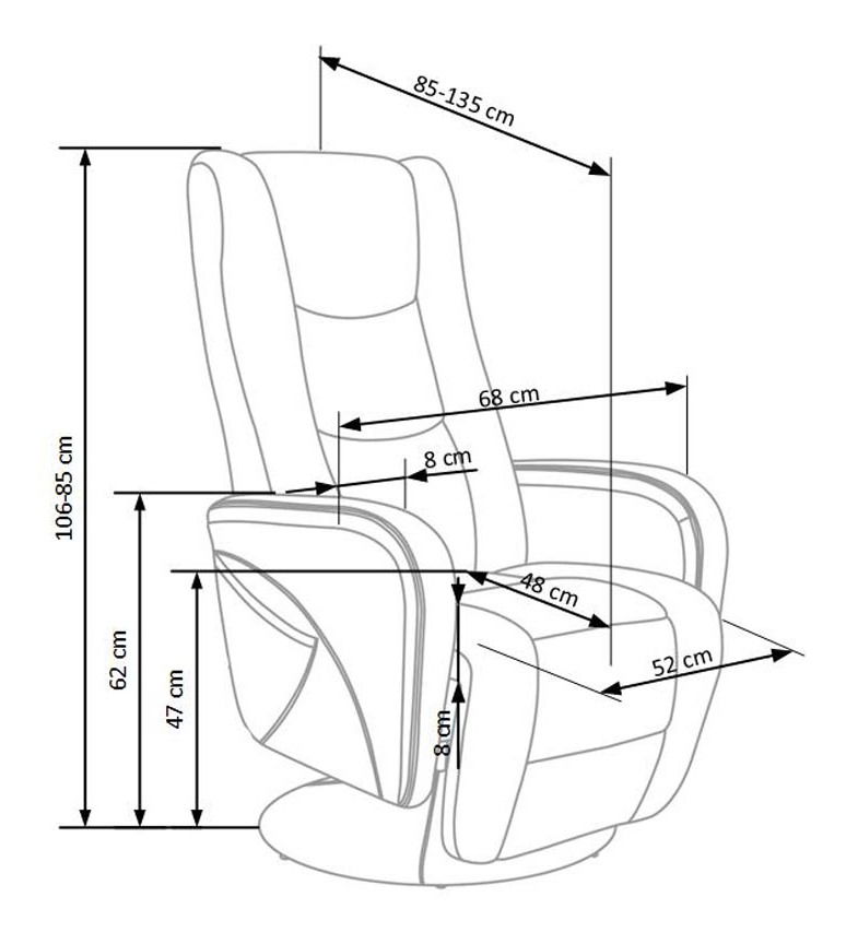 Relaxační křeslo Pulsar (šedá) je skvělou volbou pro vaše obývací prostory. Vysoká 85-106 cm a hluboká 85-135 cm křeslo se může pochlubit moderním designem a stylovými liniemi, které poskytují komfort a pohodlí. Jeho barva šedé s dokonalým finišem a kvalitním povrchem dělají z tohoto křesla exkluzivní volbu pro ty, kteří hledají stylový nábytek. Díky ergonomickému designu se křeslo Pulsar dokáže přizpůsobit vašim potřebám a nabízí vám dokonalý relaxační zážitek. Jeho snadná údržba a vysoká kvalita materiálů dělají z tohoto křesla dokonalou volbu pro vaše každodenní použití. Relaxujte ve stylu s křeslem Pulsar (šedá).