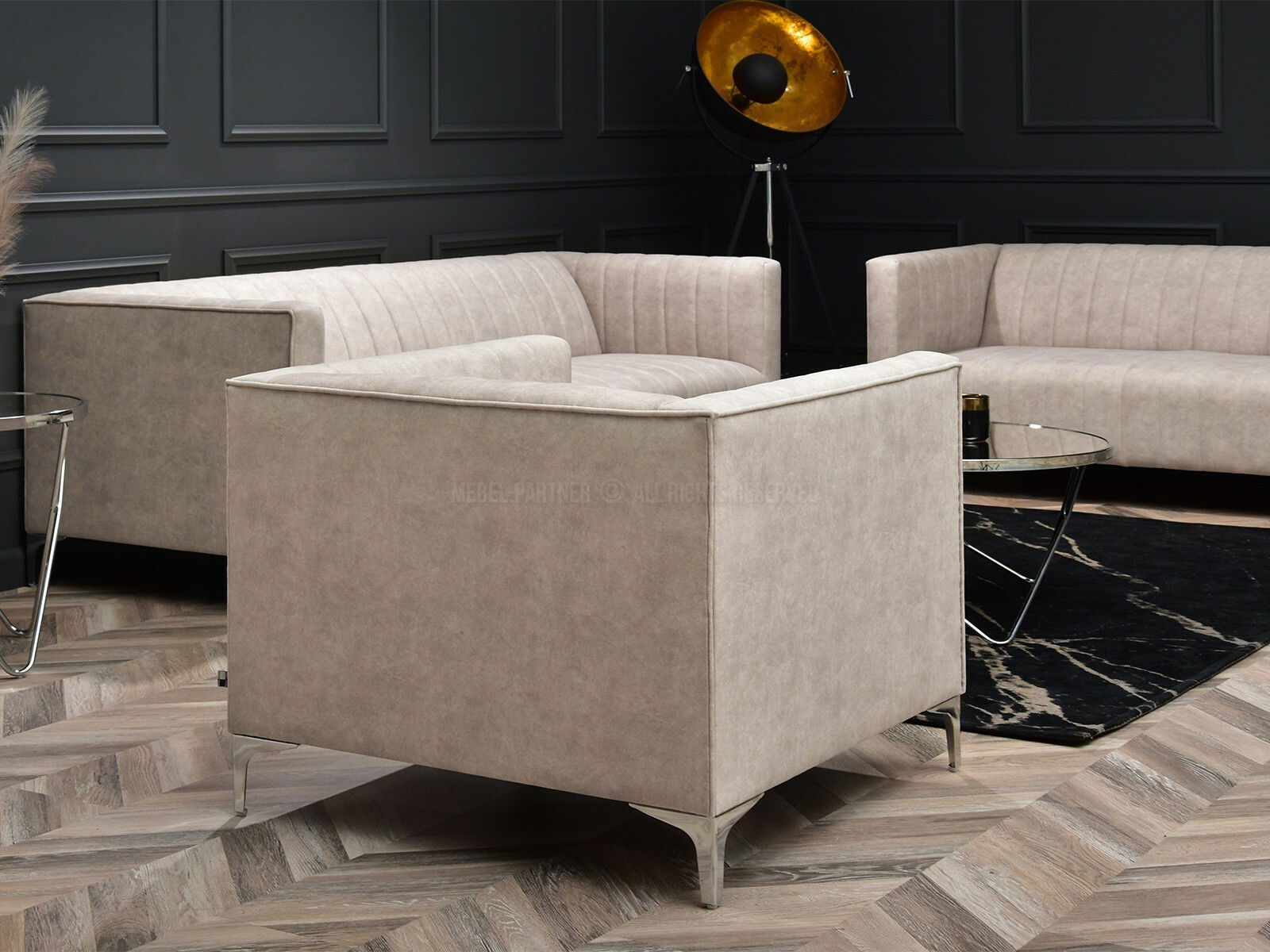 Relaxační křeslo Rotundas (písková + chrom)
