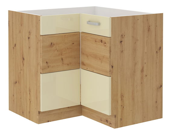 Rohová dolní kuchyňská skříňka Arryn 90 x 90 DN 2F BB (dub artisan + lesk krémový)