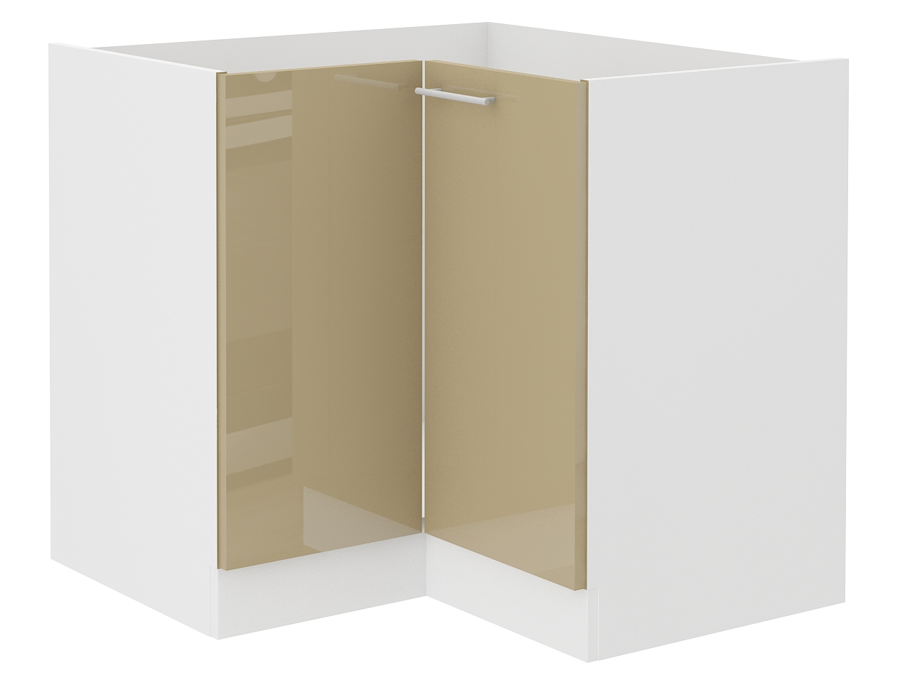 Rohová dolní kuchyňská skříňka Lavera 90 x 90 DN 2F BB (bílá + lesk cappucino)