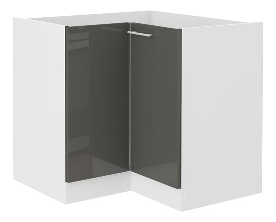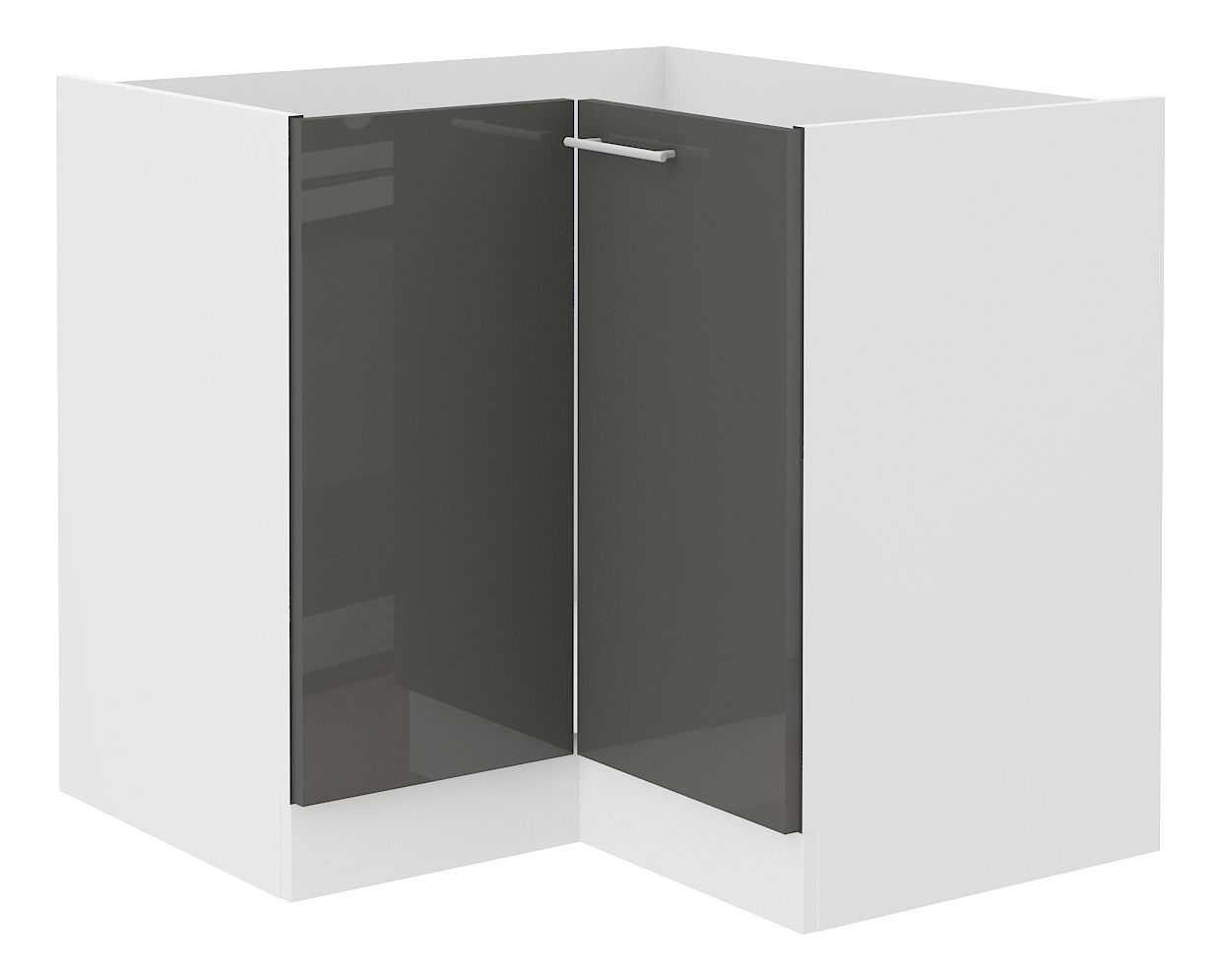 Rohová dolní kuchyňská skříňka Lavera 90 x 90 DN 2F BB (bílá + lesk šedý)