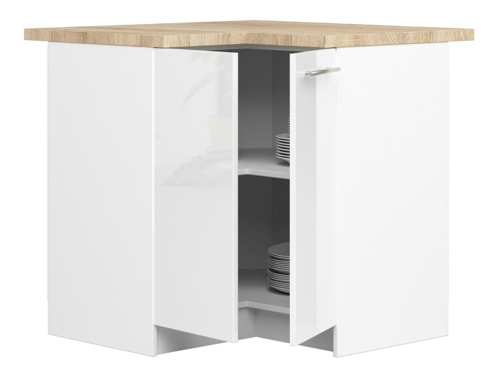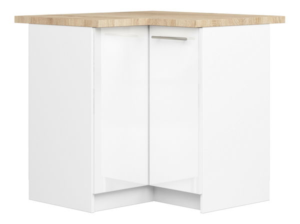 Rohová dolní kuchyňská skříňka Ozara S90 90 (bílá + bílý lesk)