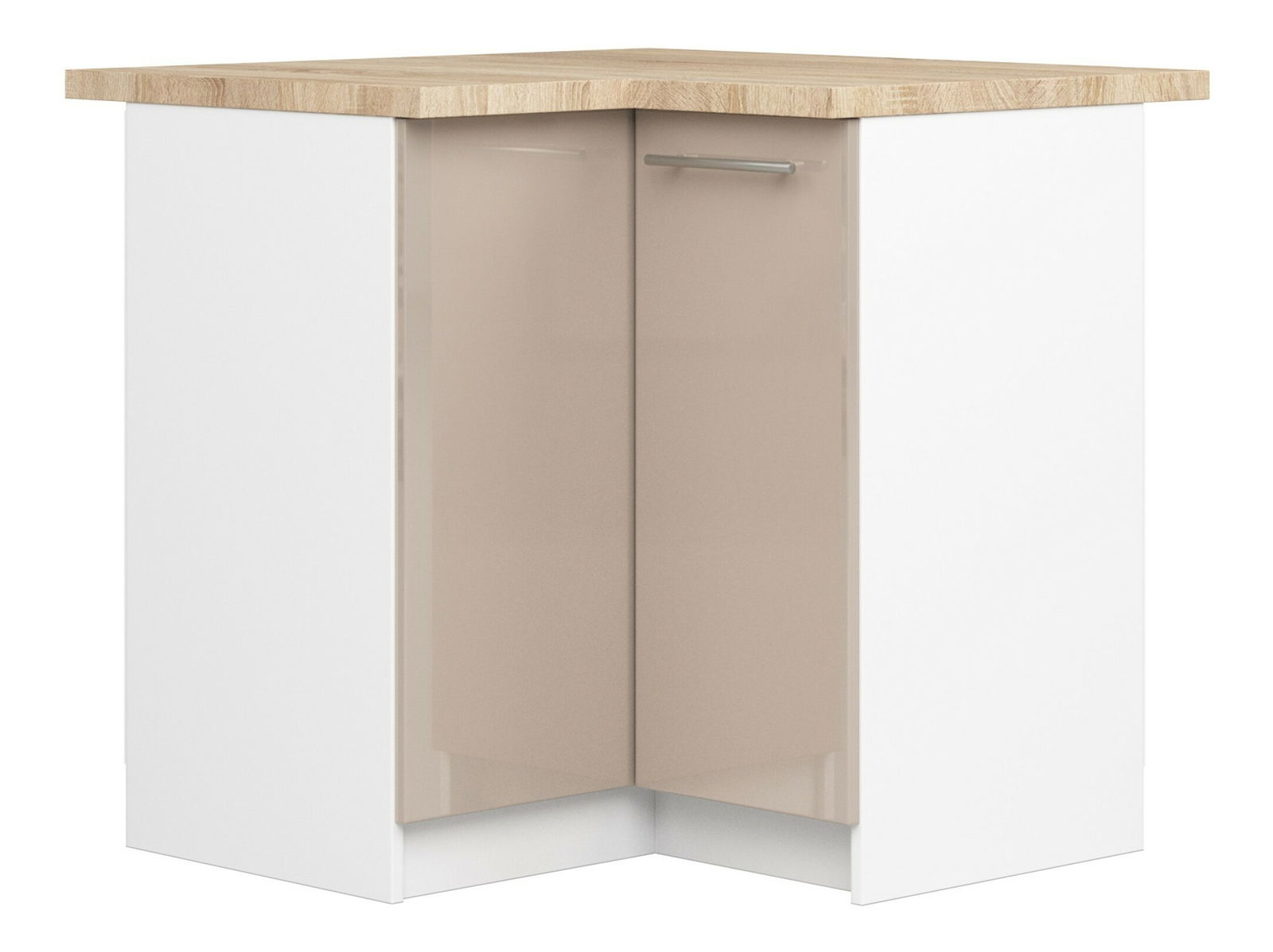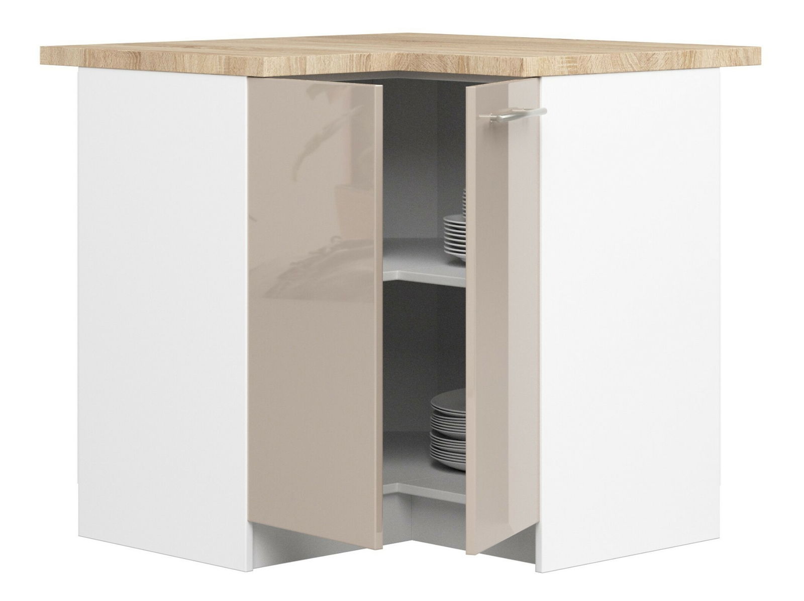 Rohová dolní kuchyňská skříňka Ozara S90 90 (bílá + cappuccino lesk)