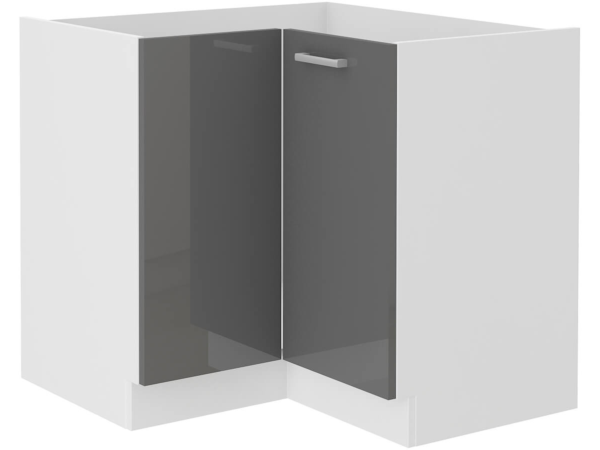 Rohová dolní kuchyňská skříňka Saria 89 x 89 DN 1F BB (Korpus: lesk šedý + Front: bílá)