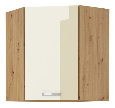 Rohová horní kuchyňská skříňka Arryn 58x58 GN-72 1F (dub artisan + lesk krémový)