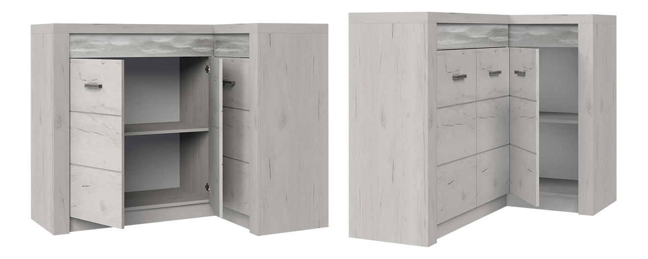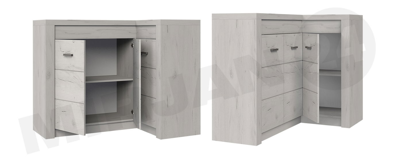 Zobrazit_x000D_ Toužíte po elegantní a přitom účelně zařízené domácnosti? Rohová komoda do obývacího pokoje Nadia N15-K je pro vás ideálním novým kouskem. Nejenže s ní zaplníte dosud nevyužitý koutek místnosti, ale nabídne vám i mnoho úložného prostoru na cokoli potřebné._x000D_