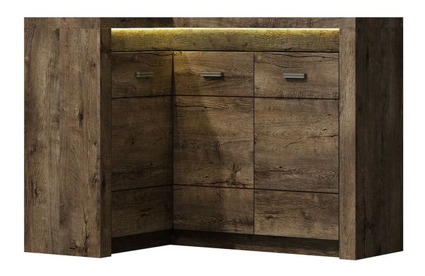 Rohová komoda Nadenas N15 O (jasan tmavý) (s teplým LED bílým osvětlením)