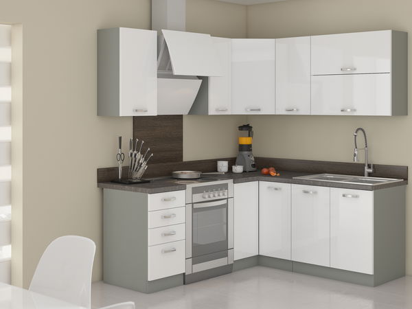 Rohová kuchyně Brunea 130 + 170 cm (šedá + lesk bílý)