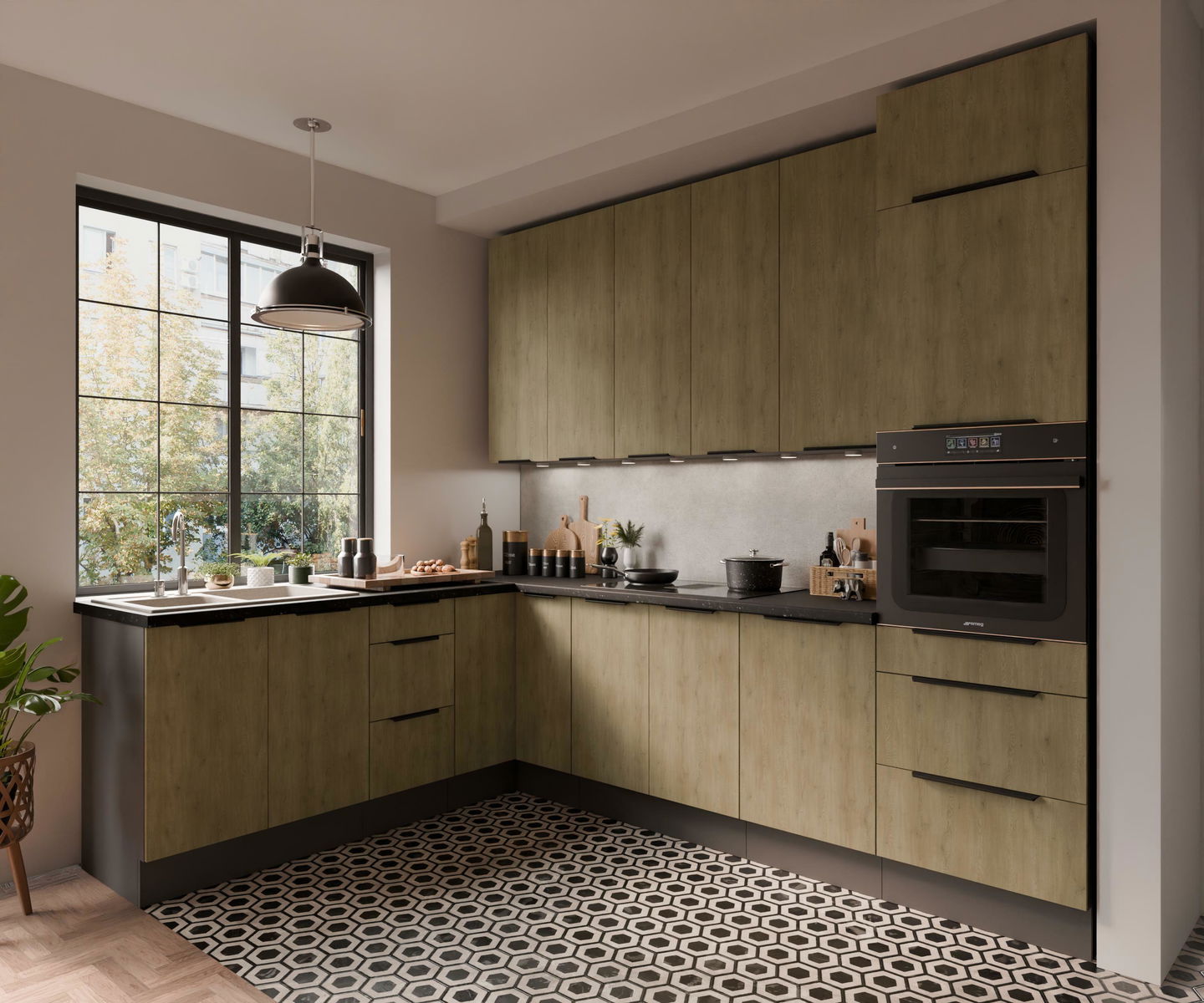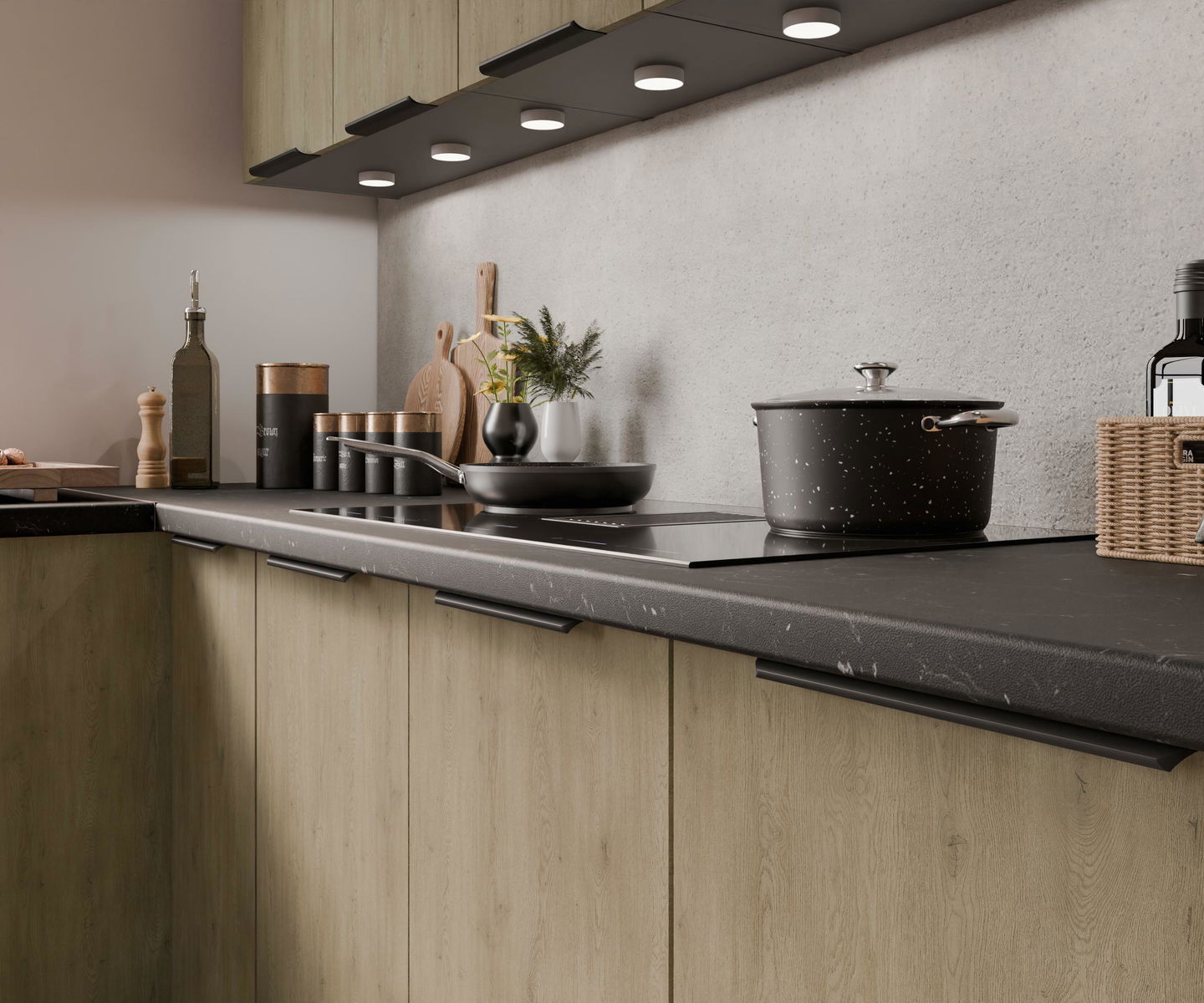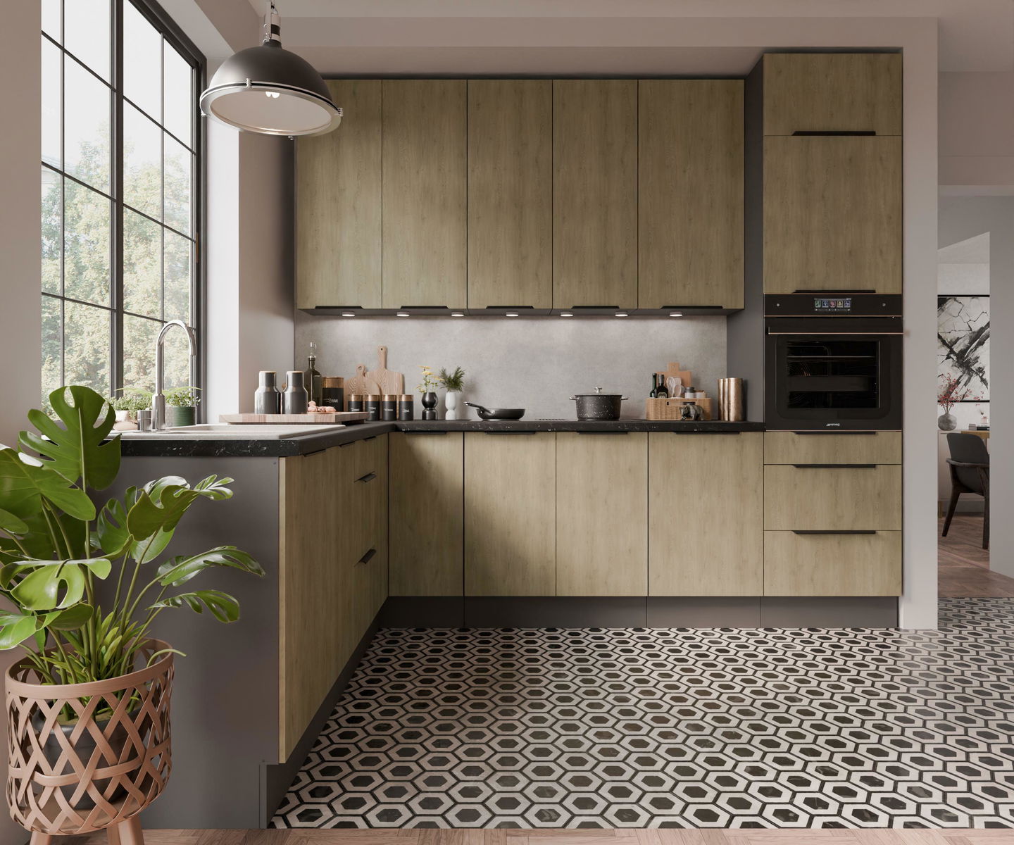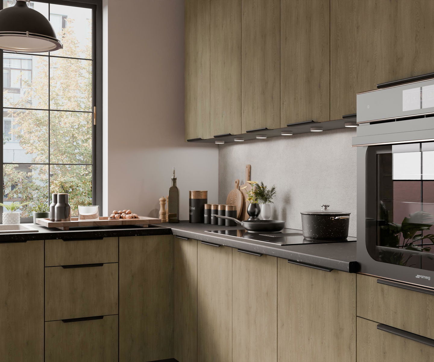 Rohová kuchyně Carminia (dub cremona + antracit)