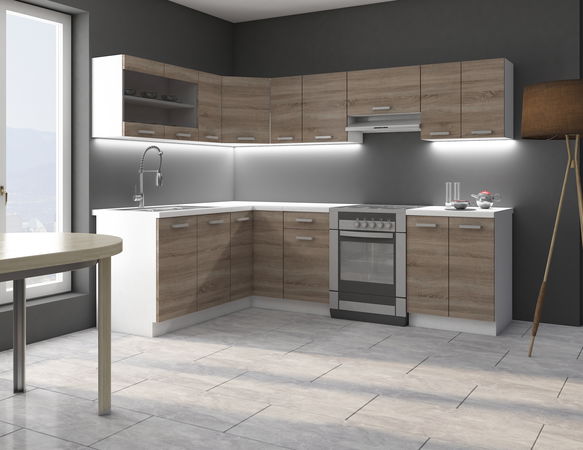 Rohová kuchyně Domton 190 + 170 cm (bílá + dub sonoma truflový)