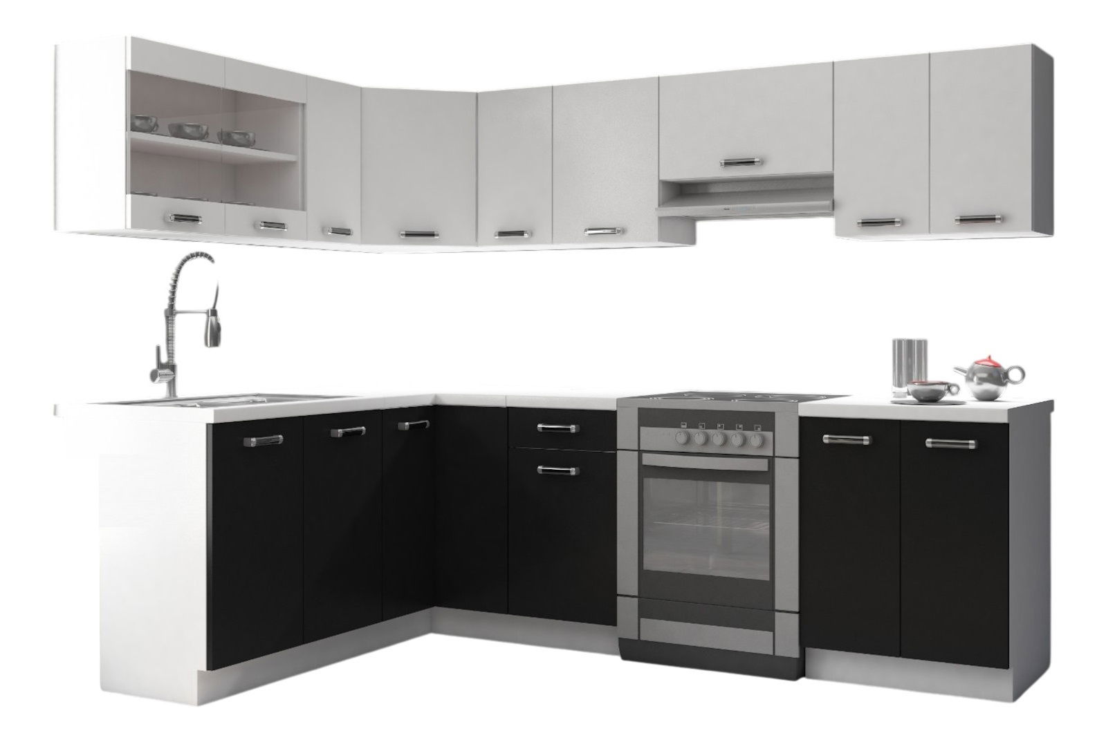 Rohová kuchyně Oran 250 + 170 cm (bílá + černá)