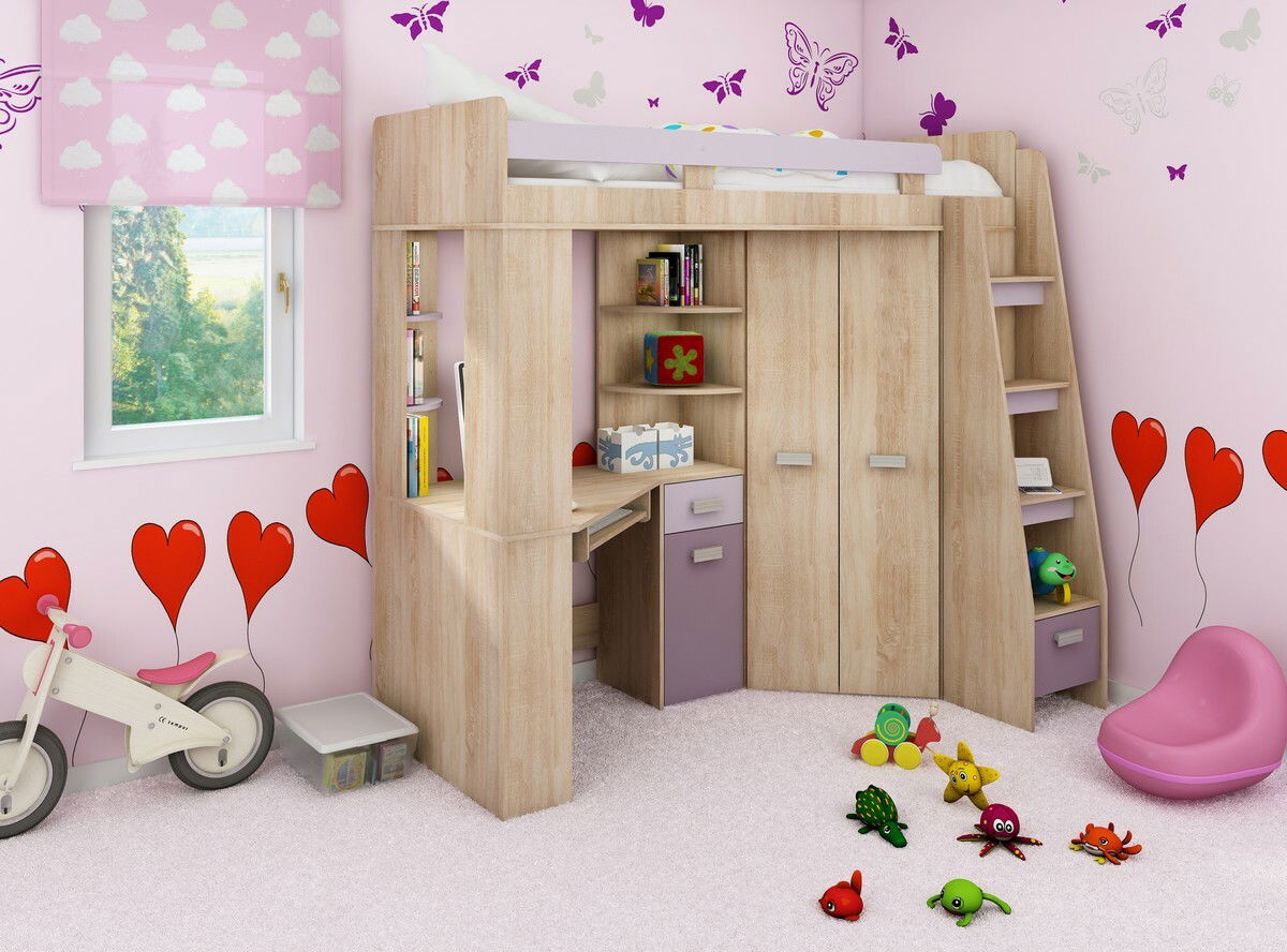 Fantastický a promyšlený kus nábytku, který Vaše dítě bude milovat. Dětské pokoje s malou plochou bývají často přeplněné nábytkem a dítě se nakonec nemá kde hrát. Antresola chce řešit tento problém s nedostatkem prostoru a nabízí 3 typy nábytky v jednom kompaktním provedení. Základ tvoří obrovský rohový šatník (4 rozměrné police a jedna věšáková tyč), kde umístíte všechny potřebné věci. K rohovému šatníku je připojen rohový pc stolek s deskou na klávesnici, skříňkou a zásuvkou na levé straně a 4 rohovými úložnými policemi na nosných sloupech postele. Nad rohovým stolkem je upevněna jednolůžková postel se zábranou proti vypadnutí. Do postele není potřebné dokoupit rošt. Namísto roštu má postel desku, na kterou se položí matrace. Doporučujeme dokoupit matraci o rozměru matrace 200 cm hloubka a 80 cm šířka, doporučená výška matrace (tloušťka) by měla být 10 cm, jinak ztratí bariéra proti vypadnutí svůj smysl. K posteli se vystupuje po poměrně vysokých čtyřech schodech (hrubé 1,6 cm) z nichž spodní schod má pod sebou úložný prostor. Tyto schody jsou připevněny k šatníku z opačné strany - oproti PC stolku. Skříň je vybavena masivními úchyty na dvířkách a zásuvkách. Pravé provedení - rohový šatník a schůdky k posteli jsou na straně pravé. Nosnost 80 kg.