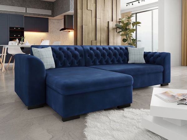 Rohová rozkládací pohovka Leon je elegantní nabídka! Charakter podtrhuje hluboké prošívání, které bylo použito na zádové opěrce a vnitřní části područek. Dekorativní akcent navíc dokonale ladí s použitou látkou. Navíc sada obsahuje dva malé polštářky se zipem. Na druhou stranu použité komponenty odpovídají za komfort používání. Díky silné vrstvě pěny je sedák extrémně měkký a pohodlný. Rohová sedací souprava nabízí funkci spaní. V rozloženém stavu má povrch 225 cm x 125 cm, což zajišťuje pohodlný spánek pro dvě osoby. Náhradní lůžkoviny si však můžete nechat v úložném prostoru, který je umístěn pod sedadlem.