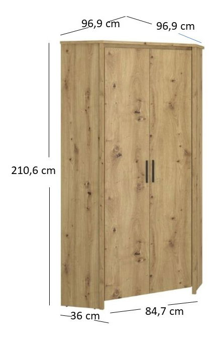 Rohová šatní skříň Andra 2D (dub artisan)