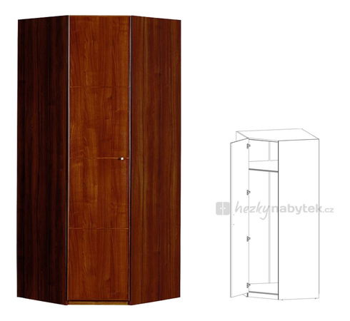Elegantní rohová šatní skříň, kterou si zkrášlíte předsíně, obývací pokoje, případně ložnice. Tradiční styl je doplněn o jemné moderní prvky, čili skříň je univerzální a hodí se i do moderních, ale i klasicky zařízených domácností.