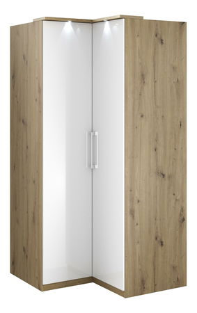 Rohová šatní skříň Centaury Typ 16 (dub artisan + bílý lesk)