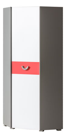 Rohovou šatní skříň oceníte pokud máte méně prostoru v pokoji. Kromě toho, že využijete roh místnosti do skříně můžete zavěsit i poskládat. Uvnitř se totiž nachází tyč na ramínka i 4 poličky. Vyrobena je z laminovaných desek s ABS hranami.