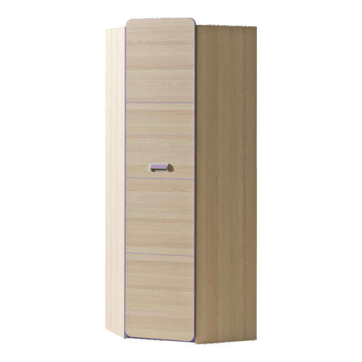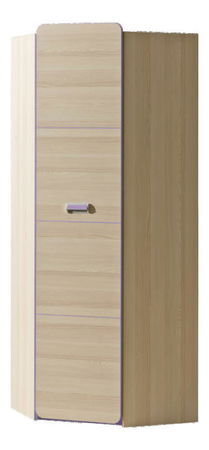 Rohová šatní skříň Vám poskytne množství úložného prostoru na oblečení a doplňky. Jednoduchý, ale moderní design je doplněn o ozdobný barevný okraj. Šatní skříň je vhodná na zařízení studentského, či dětského pokoje.