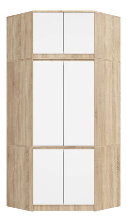 Rohová šatní skříň (s nástavbou) Simboliza (dub sonoma + bílá)