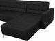 Tato velká rohová pohovka je ideálním kusem nábytku do vašeho obývacího pokoje. Sestává z třímístné a jednomístné pohovky a lehátka. Díky nastavitelnému opěradlu ji lze snadno rozložit na pohodlnou postel pro dvě osoby. Lehátko může být umístěno na pravé nebo levé straně. Tato pohovka je celá čalouněná vysoce kvalitní a stylovou grafitovosivou látkou s elegantním prošíváním a nabízí funkčnost i nadčasový styl. Je dobrou volbou do moderních, ale také tradičně zařízených interiérů. Stabilitu pohovky zaručují kovové nohy.