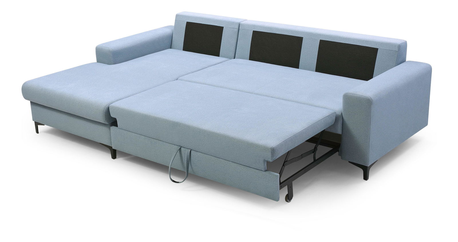ZobrazitTato rohová sedačka nabízí moderní design a praktické funkce, které ocení každá domácnost. Její konstrukce je vyrobena ze dřeva a dřevotřísky, což zaručuje pevnost a dlouhou životnost. Sedák je vyplněn PUR pěnou a pružinami, což poskytuje vysoký komfort při sezení. Sedačka je rozkládací a nabízí plochu na spaní o rozměrech 138 x 212 cm, ideální pro hosty. Výška sezení je 41 cm a hloubka sezení 52 cm, což zajišťuje pohodlné sezení. Područky mají výšku 55 cm. Sedačka disponuje úložným prostorem, který je praktický pro uschování různých předmětů. Hřbet sedačky je potažen stejnou látkou, což zaručuje jednotný vzhled ze všech stran. Opěrky hlavy jsou samostatným kusem, což umožňuje jejich umístění dle potřeby. Nožičky jsou kombinací kovu a plastu, což dodává sedačce stabilitu a moderní vzhled. Typ rozkládání je vozík, což usnadňuje manipulaci při rozkládání. Tkanina Rino, použitá na čalounění, je potažena speciální ochrannou vrstvou, která tvoří hydrofobní povlak. Tento povlak chrání před rychlým prosakováním tekutin, čímž zabraňuje okamžité absorpci vody tkaninou a způsobuje kondenzaci kapaliny na povrchu. To nám dává čas použít jemný hadřík nebo papírovou utěrku na odsátí rozlité kapaliny. Gramáž tkaniny je 210 g/m2 a složení 100% polyester. Tkanina má odolnost 60 000 cyklů Martindale.