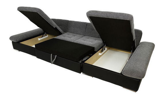ZobrazitRohová rozkládací pohovka je ideální volbou pro ty, kteří hledají pohodlí a styl. Prostorná rohová rozkládací pohovka Agata Premium je prvotřídním rekreačním nábytkem. Dvě podlouhlé pohovky mu dodaly tvar písmene "U", čímž poskytly spoustu prostoru pro všechny členy rodiny. Pohodlí při relaxování na sedačce zvyšují nastavitelná opěradla pod ruce, jejichž nastavení si můžete přizpůsobit svým potřebám. Prostorná sedačka je jako stvořený pro každodenní použití, tak pro setkání s přáteli při odpolední kávě. Široká škála barev potahů se perfektně hodí k ostatním prvkům obytného prostoru, také se dokonale hodí k modernímu konferenčnímu stolku nebo kávovému stolku. Z hlediska funkčnosti je rozkládací pohovka vybavena rozkládací funkcí. Po rozložení středové části sedačky získáte prostorné místo pro každodenní spánek pro dvě osoby. Je to skvělá volba pro hosty, kteří chtějí přenocovat. Organizaci ložního prádla usnadňují dva úložné prostory, které se nacházejí pod pohovkou. Rozměry: délka: 360 cm, šířka: 160 cm, výška: 75 cm, plocha na spaní: 360 x 130 cm Provedení: konstrukce sedáku: dřevěný rám + pružina + plst + pěna T2844 (10 cm), struktura opěradla: dřevěný rám + pryžový pás + pěna T2 na spaní, roh typu "U", úložný prostor na ložní prádlo, nastavitelné područky, polštáře v ceně (3 malé) - na zip, čalouněné opěradlo natrvalo připevněné, chromované přední nohy, černé plastové zadní nohy Záruka: 24 měsíců